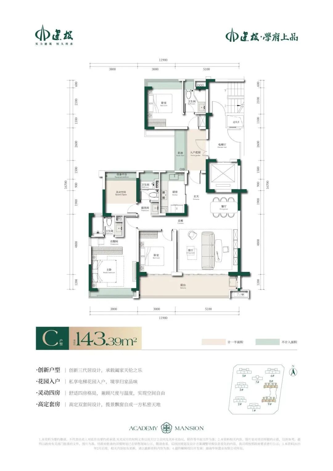 建投·学府上品项目主力户型为110.13㎡-192.82㎡三居到四居产品,全系户型纯板式结构,所有户型均配备私享入户电梯厅,配备全屋智能化布线。其中143.39㎡户型采用创意三代居户型,四房三卫,采用双套房分区设计,互不干扰,最大程度的保证了业主私密性,私享电梯入户,全景观入户花园;110.13㎡户型三居两厅双卫,越级奢享入户电梯厅,100%超高得房率。精装选用春天、科勒、方太等国际品牌,全屋智能化布线,隔音涂料,镀锌钢板吊顶等,细节之处尽显品质。社区规划全架空层主题会所、智能安防系统、儿童主题乐园等全龄配套,单元入户门配备四合一智能门锁(指纹/密码/刷卡/钥匙)细节处彰显人性化关怀。建投物业提供智能化现代社区服务,涵盖智慧社区管理等增值服务。
