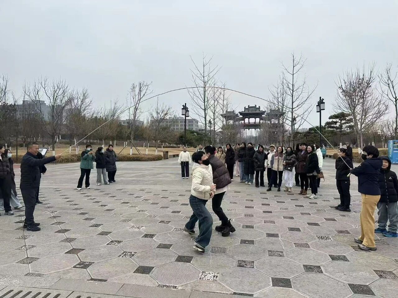 柱天公司在太原市双塔公园南门开展了“墨香盈袖踏春行,巾帼聚力绽新程”系列活动。本次活动围绕女职工身心需求策划开展,设置踏青健步、跳绳比赛两大团建项目,兼顾户外休闲与趣味竞技,让大家在感受春日风光的同时,强身健体、增进协作。