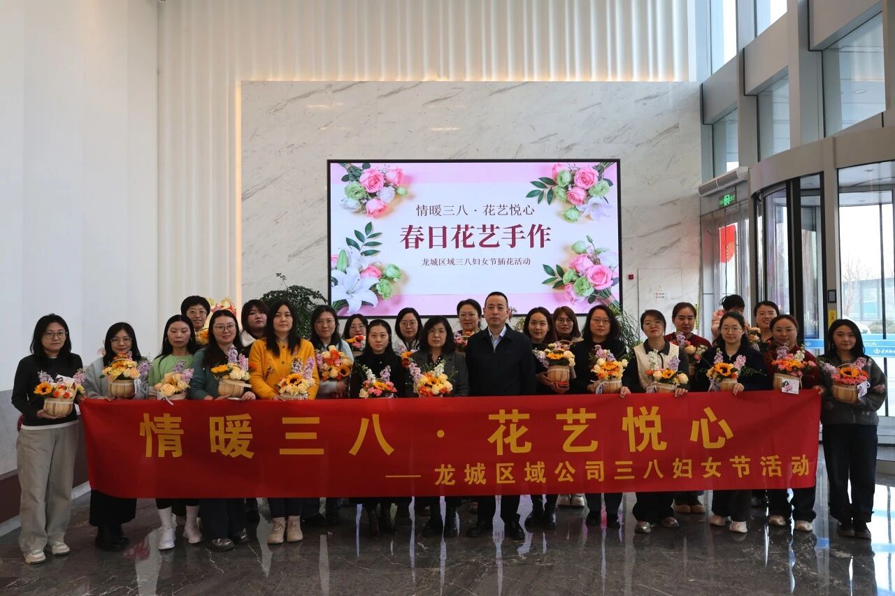 龙城区域公司举办“情暖三八・花艺悦心”插花活动,让大家在花香中舒缓身心、感受春日美好。此次插花活动,是公司关爱女职工的具体体现,既让全体女职工度过了一个别样的三八妇女节,也展现了公司女职工积极向上、多才多艺的精神风貌。