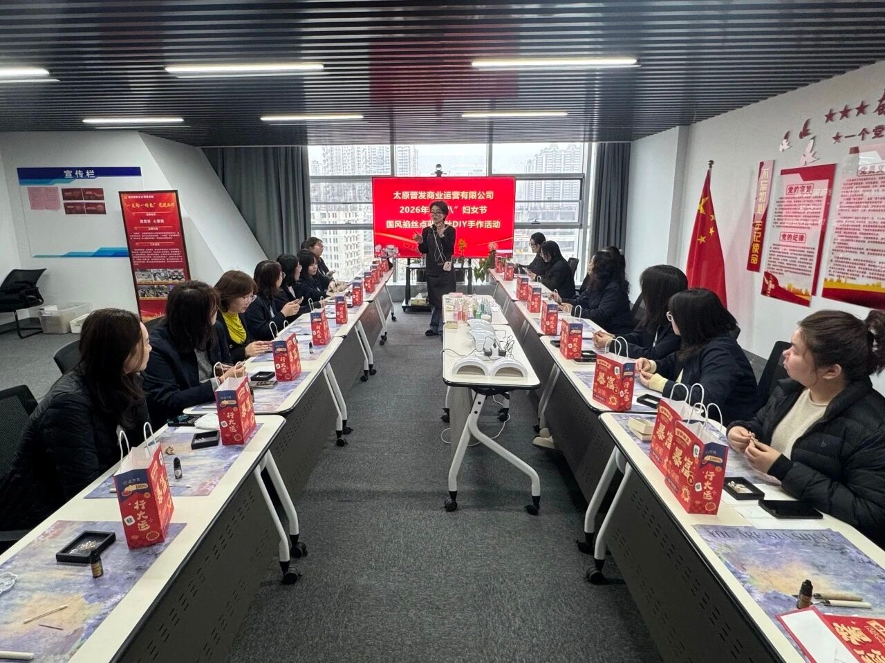 太原晋发商业运营有限公司举办“针藏古韵,致敬巾帼”国风点蓝胸针DIY手作活动。活动现场,女职工们沉浸式体验非遗点蓝工艺,彩釉填色,亲手制作专属国风胸针。此次活动既传递了公司对女职工的关怀与敬意,也让大家在忙碌工作之余舒缓身心、陶冶情操,激励大家以更饱满的热情投身公司高质量发展征程。