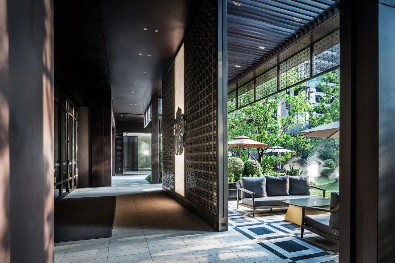 建投·学府上品项目公区精装修以沉稳的古铜色搭配高级灰再点缀绿色,搭配出端庄富有高级感的装饰效果,住宅IP符号“梅花”贯穿整个小区让梅花纹增加归家的温暖属性。“双大堂”设计,泛大堂地面使用项目IP纹样石材拼花,通过一个景观连廊,进入到“副大堂”区域,也就是电梯等候区电梯门扇增加项目IP纹样,入户门牌造型及铸铝门扇项目IP纹样,提升整体归家仪式感和尊贵感。