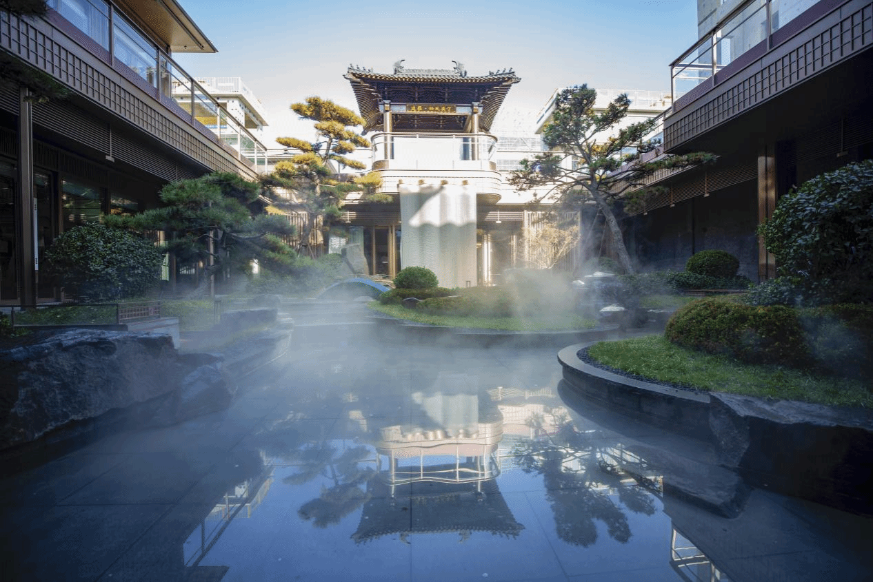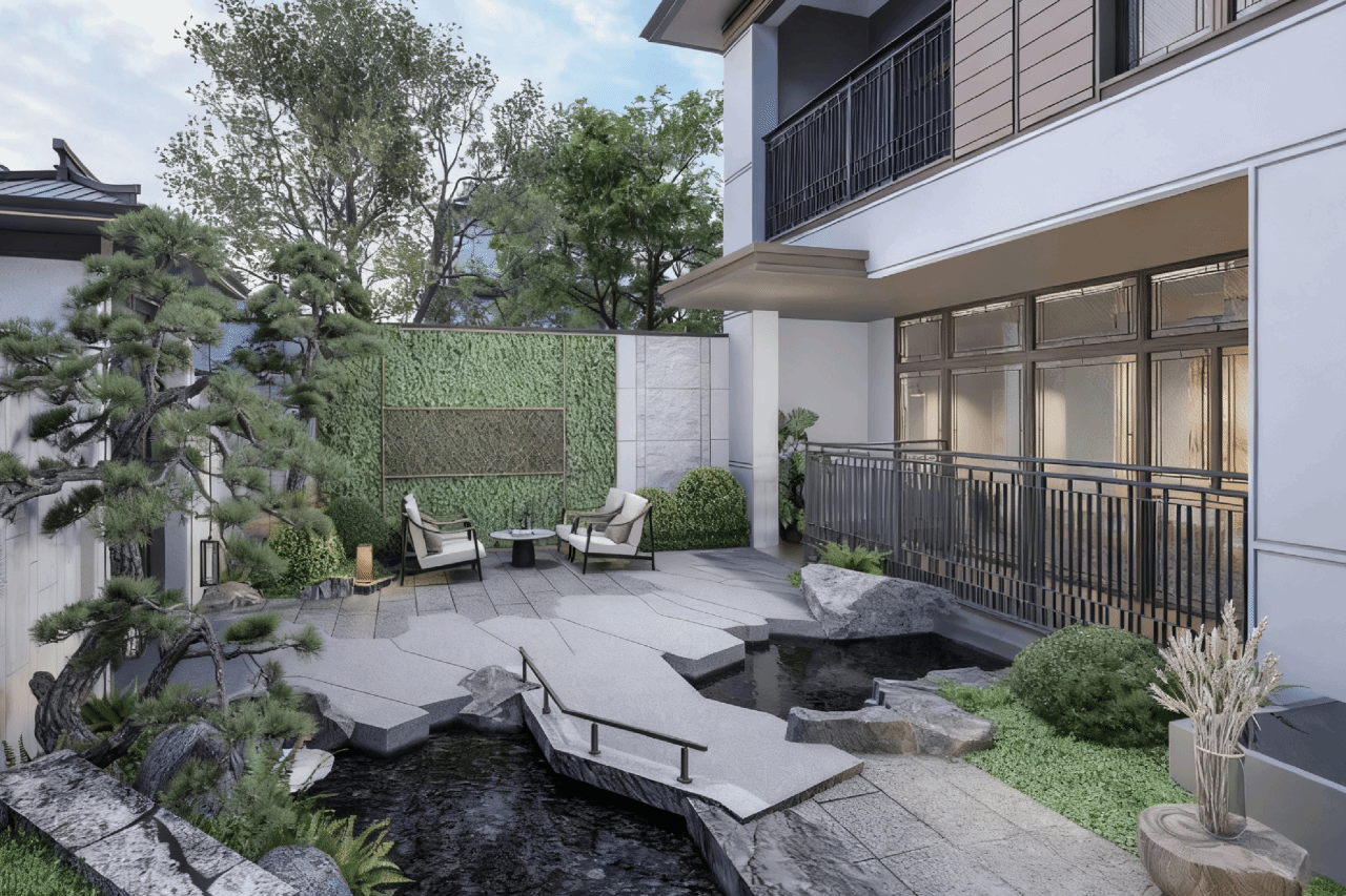 建筑选用汝窑肌理涂料、金属线条、优质木材及石材,以 “雨过天青” 为色调基调,通过合理空间规划、全景落地窗设计,实现古雅形制与现代功能结合。项目配套天然温泉入户,经检测水质优质,偏硅酸含量 32.5mg/L,pH 值 8.28 呈弱碱性,将温泉康养融入日常居住。