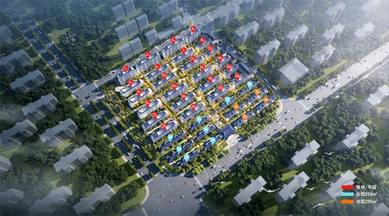 建投·栖凤安宁项目是建投地产在太榆核心区域开发的重点工程,选址太榆核心板块,以 1.5 低容积率规划建设宋韵纯墅社区,包含建筑面积 180-195㎡叠拼、252-295㎡合院产品。项目深度融合榆次地域文化,遵循宋代园林营造理念,采用一轴、三进、六境空间布局,建设宋代风格归家仪式会所。